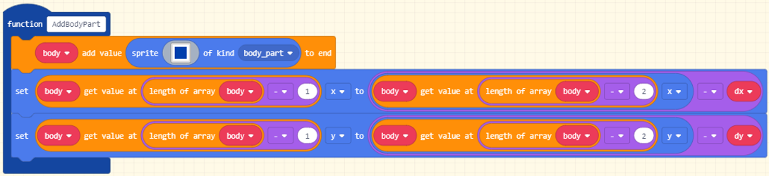 - Add a tail piece for the snake. When adding a new body part, first change the last body part in the list to a normal snake body, then add the new body part with a tail image.