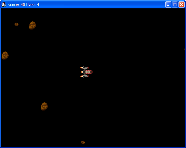 Game play starts with the ship in the centre of the screen. A life is lost if an asteroid collides with the ship
