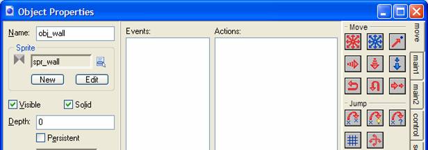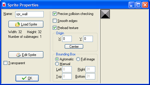 - Call the sprite, spr_wall and load the wall image. It is not transparent.