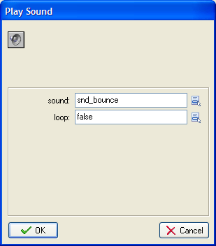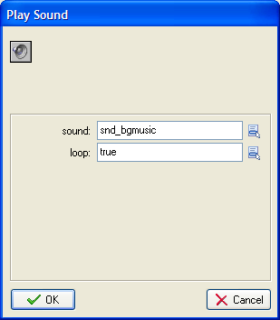 - Drag in the Play Sound icon underneath the actions that are there. Fill in the pop-up window as shown.