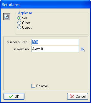 When a UFO has been created, we need to reset the alarm. Drag in another Set Alarm icon and fill it in like before.