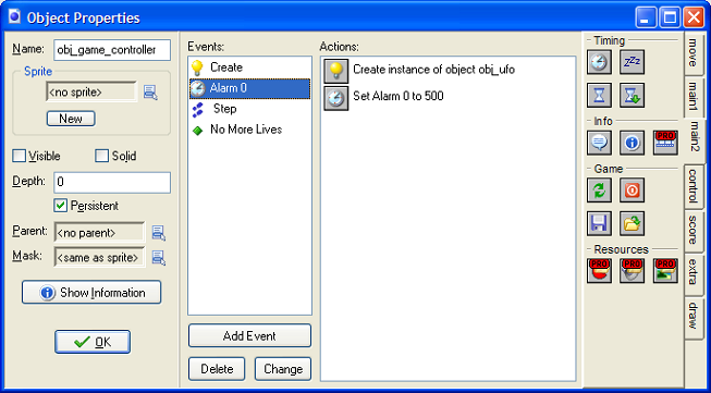 Start by creating a new sprite called spr_ufo. Load up the UFO graphic. Create a new object using this sprite called obj_ufo.